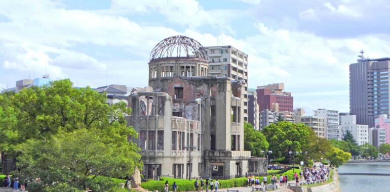 海に浮かぶ嚴島神社と、平和への願いを伝え続ける原爆ドーム。