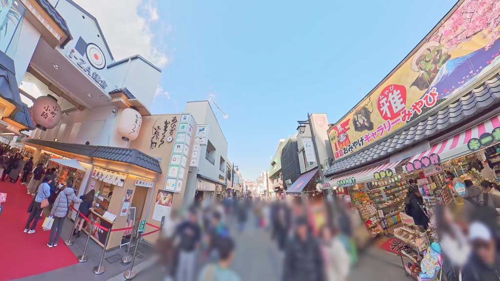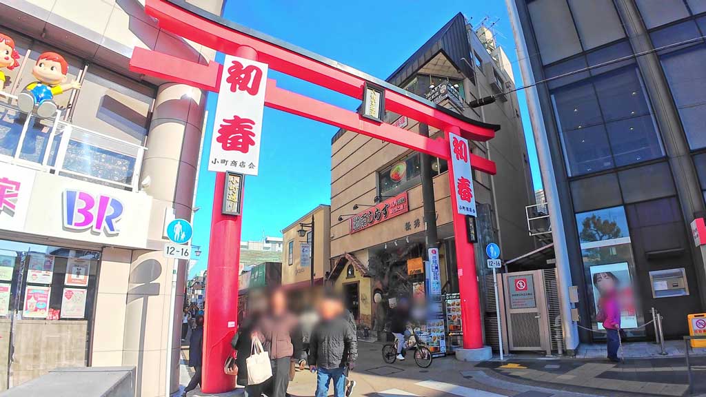 鎌倉駅東口からすぐの場所にある、食べ歩きとお土産探しが楽しめる観光にぴったりのスポットです。平日・週末を問わず多くの観光客でにぎわっています。鎌倉駅東口から見える赤い鳥居が目印です。